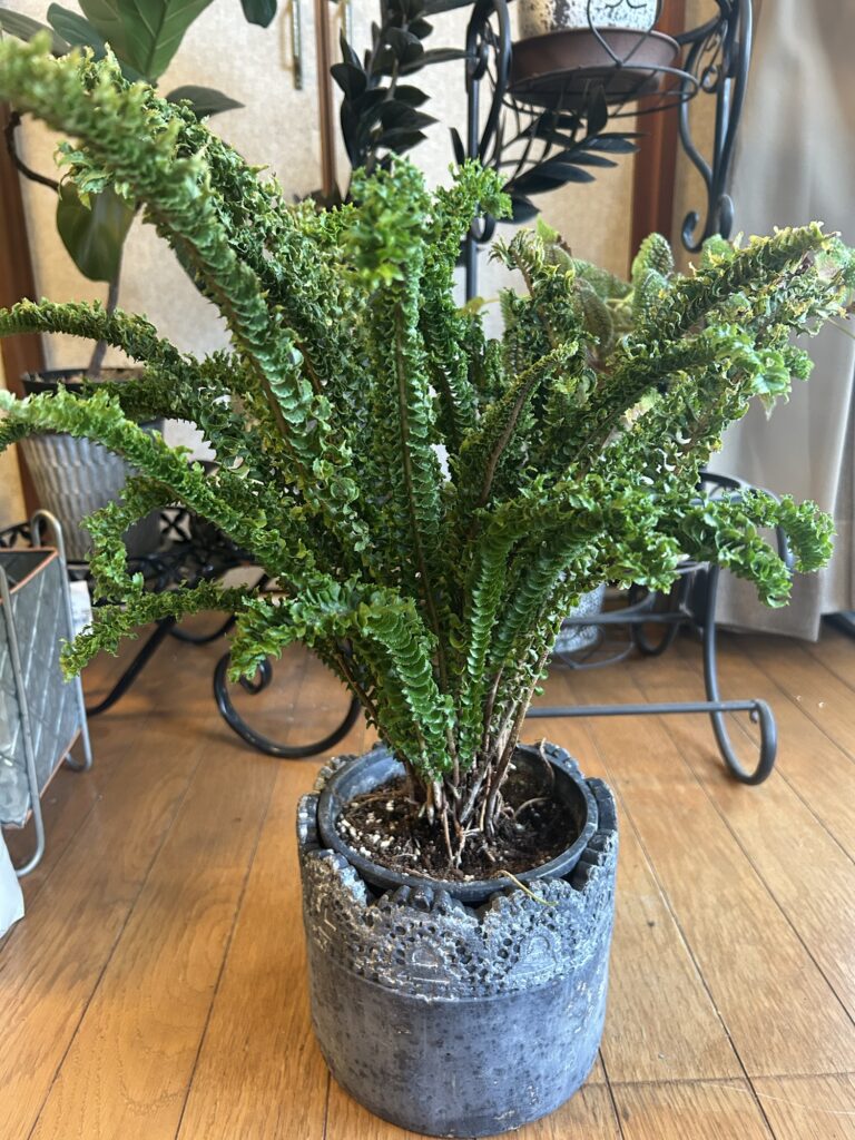 葉っぱのわしゃわしゃ感、独特のフォルムに一目惚れ!シダ系なのでお水大好き、毎日の葉水は欠かせません。