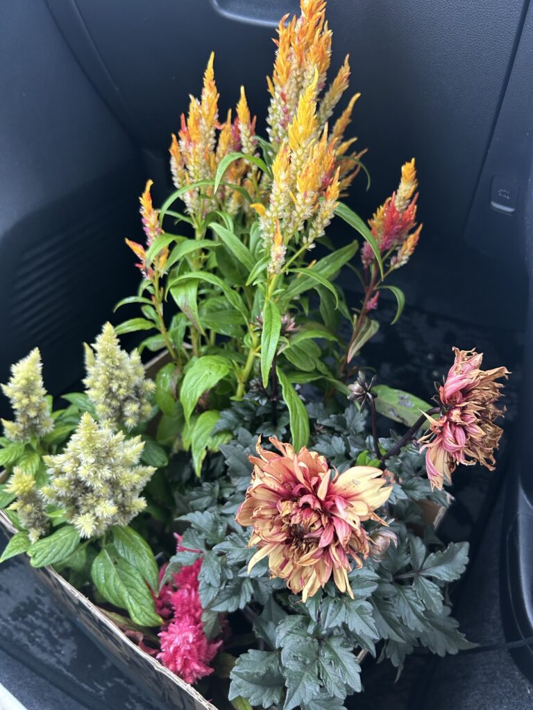 夏に壊滅したマイガーデンの隙間に彩りが欲しくて、秋色ケイトウとダリアを買ってみました。